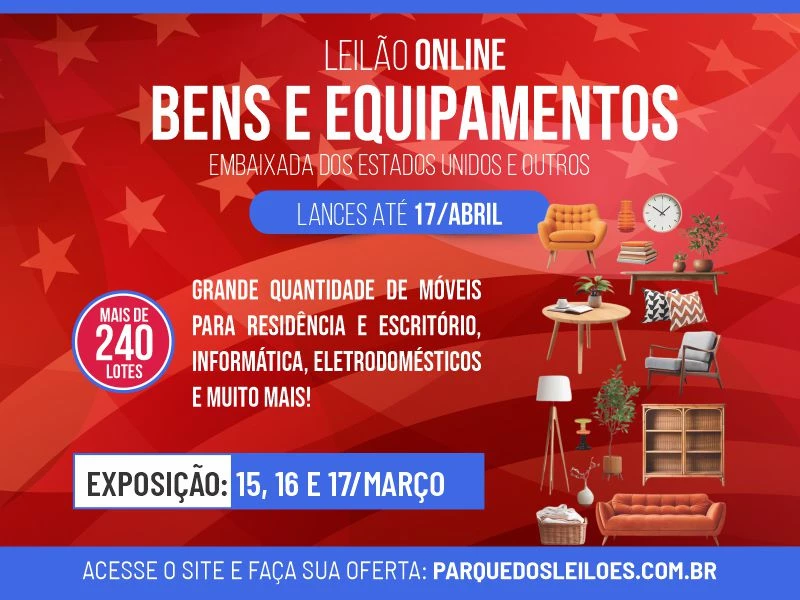 • LEILÃO EXCLUSIVAMENTE ONLINE • ATENÇÃO: • CADA USUÁRIO CADASTRADO NA PLATAFORMA ESTÁ LIBERADO PARA OFERTAR LANCES EM ATÉ 10 LOTES. CASO VOCÊ QUEIRA OFERTAR EM MAIS LOTES, FAVOR ENTRAR EM CONTATO COM NOSSA EQUIPE (61 3301-5051) ATÉ 24HS ANTES DO ENCERRAMENTO DO LEILÃO PARA SABER COMO LIBERAR SEU CADASTRO PARA MAIS LOTES. • LANCES EFETUADOS NOS ÚLTIMOS 15 SEGUNDOS TERÃO O CRONOMETRO ACRESCIDO EM MAIS 15 SEGUNDOS ATÉ O FINAL DA DISPUTA, CONFORME ITEM 3.4 DO EDITAL.