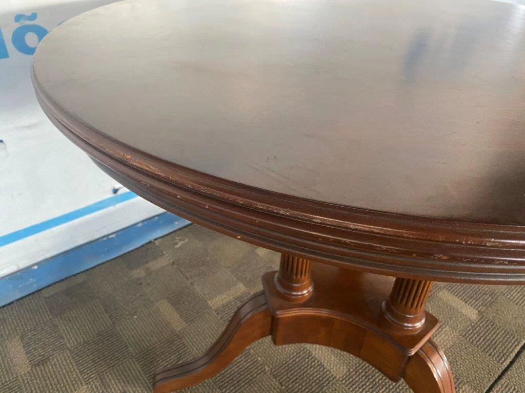 | Descrição: | 01 MESA CIRCULAR EM MADEIRA ESCURA COM TAMPO, MEDINDO: ALTURA 0.75CM. (NO ESTADO). |