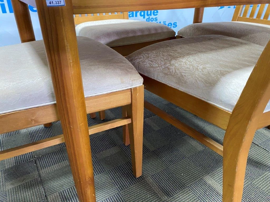 | Descrição: | 01 MESA DE JANTAR, 04 QUATRO CADEIRAS, ASSENTO EM ESTOFADO EM TECIDO COR BEGE, TUDO EM MADEIRA CLARA, MEDINDO: (MESA ALTURA 0.73CM, COMPRIMENTO 1.22M E LARGURA 0.78CM), (CADEIRA ALTURA 1.04M, LARGURA 0.53CM E PROFUNDIDADE 0.49CM). (NO ESTADO). |