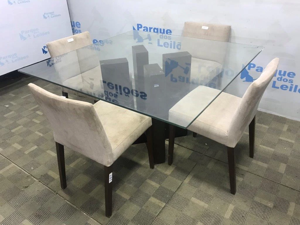 | Descrição: | 01 MESA COM PÉ EM MADEIRA TAMPO DE VIDRO QUADRADO. (QUINA TRINCADA) MED: 1,30 X 130 E QUATRO CADEIRAS FIXAS ESTOFADAS COM TECIDO COR BEGE. (NO ESTADO) |