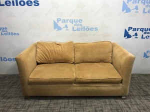 01 SOFÁ DE DOIS LUGARES COM 04 ALMOFADAS SOLTAS ESTOFADO COM TECIDO COR MARROM. (NO ESTADO)