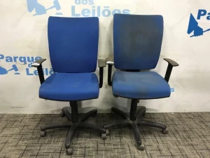 02 POLTRONAS GIRATORIAS ESTOFADAS COM TECIDO COR AZUL. PAT 50256 , 50255. ( NO ESTADO)