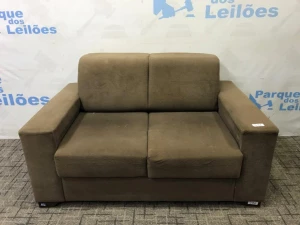 01 SOFA DE DOIS LUGARES ESTOFADO COM TECIDO COR MARROM PAT 53682 ( NO ESTADO)