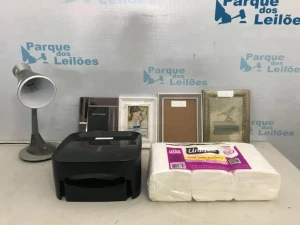 04 PORTA RETRATO , UM LUMINARIA MARCA TASCRIBA ,01 PORTA PAPEL TOALHA E 1000 FOLHAS DE PAPEL TOALHA. .01 APARELHO DE DVD MARCA JVC. ( NO ESTADO)