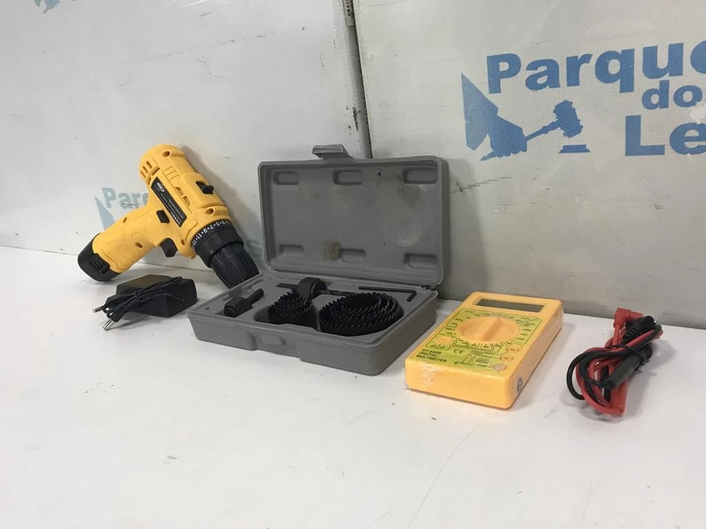 | Descrição: | 01 PARAFUSADEIRA A BATERIA COM UM MULTIMETRO E UM KIT SERRA COPO. PAT 60461. ( NO ESTADO). |