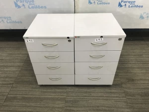 02 GAVETEIROS EM MADEIRA COM QUATRO GAVETAS CADA. PAT 60849. ( NO ESTADO).