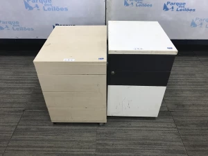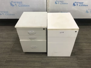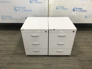 02 GAVETEIROS EM MADEIRA COM TRES GAVETAS CADA. PAT 60850. ( NO ESTADO).
