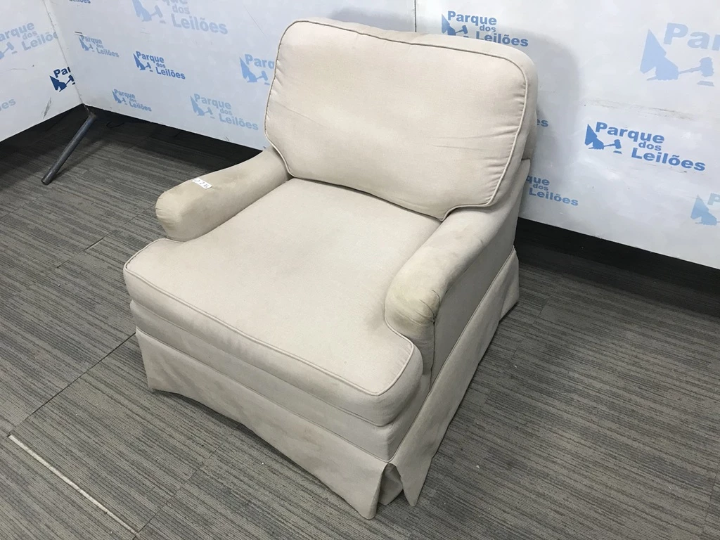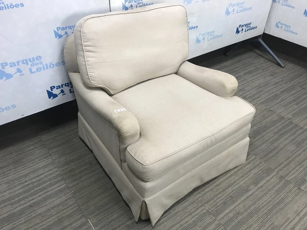 Descrição: | 01 POLTRONA COM DUAS ALMOFADAS SOLTAS ESTOFADAS COM TECIDO COR BEGE. TAG - AV9409U - PAT 60417. ( NO ESTADO). |