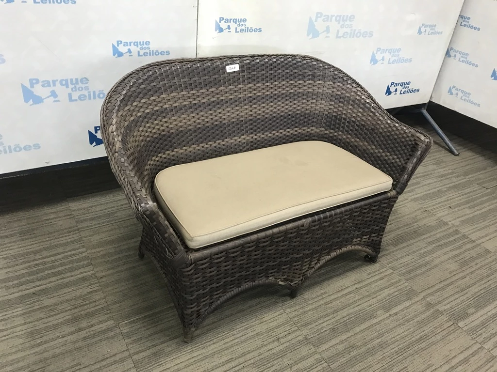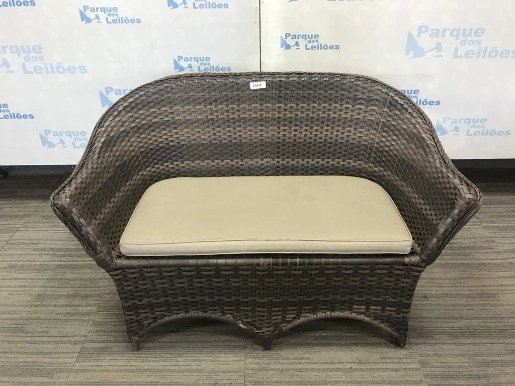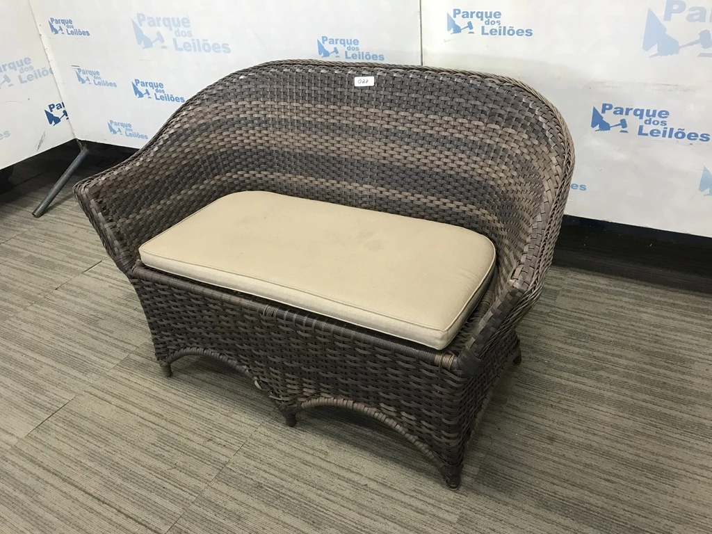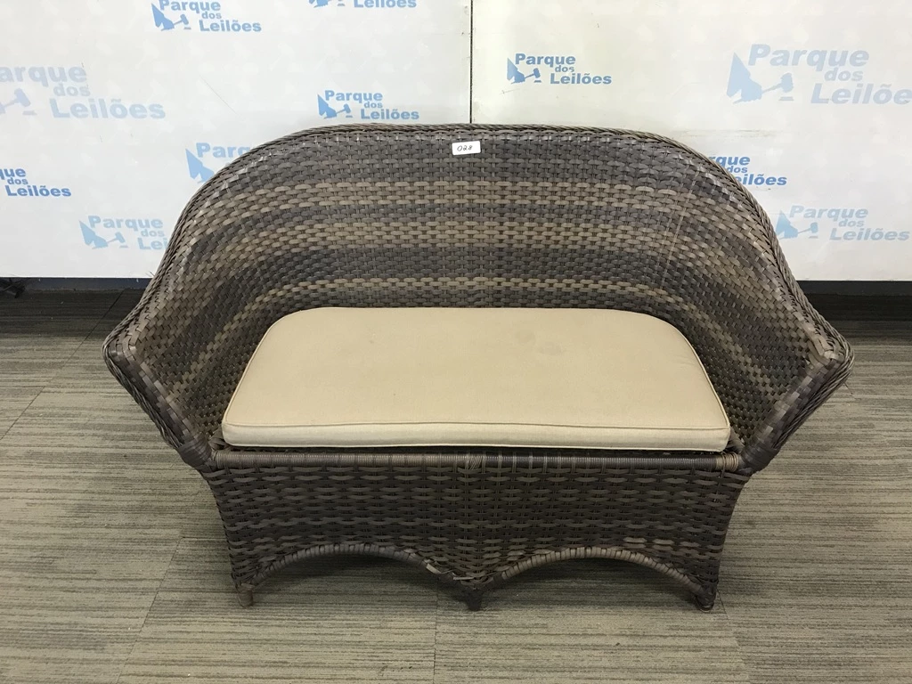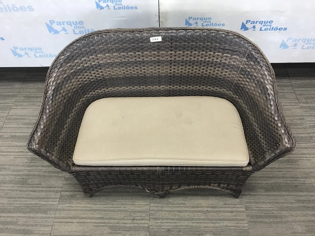 Descrição: | 01 SOFA DE 02 LUGARES REVESTIDO COM PLASTICO TRANCADAO COM UMA ALMOFADA SOLTA. TAG AV9504M. PAT 60698. ( NO ESTADO). |
