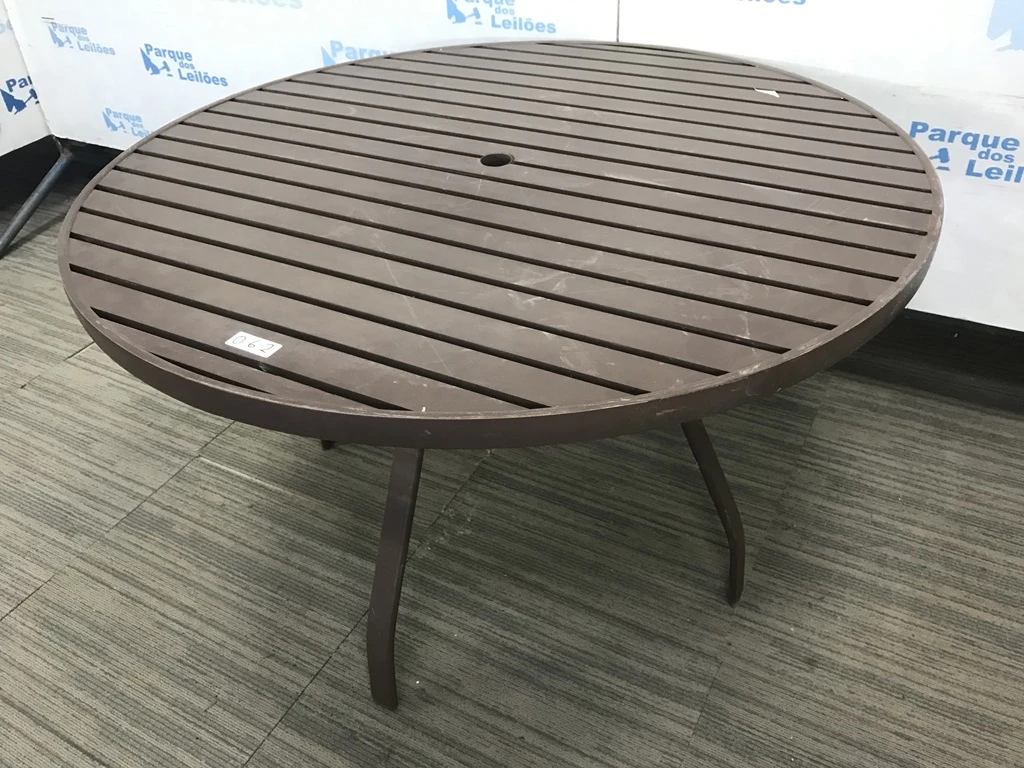 Descrição: | 01 MESA PARA PISCINA EM ALUMINIO COM TAMPO CIRCULAR. TAG - BH1646V. PAT 60393. ( NO ESTADO). |