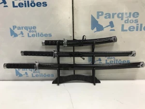 03 ESPADAS KATANAS ORNAMENTAIS COM SUPORTE. PAT 60938. ( NO ESTADO).