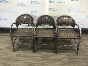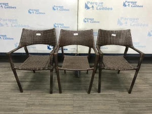 03 CADEIRAS FIXA COM BRACOS REVESTIDAS COM PLASTICO TRANCADO. TAG - BF8625D - BF8488W - AV9533W PAT 61016 - 61017. 61018 ( NO ESTADO).
