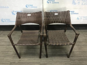 02 CADEIRAS FIXA COM BRACOS REVESTIDAS COM PLASTICO TRANCADO. TAG - BH1587Y - BH1654R - PAT 61000 - 61001. ( NO ESTADO).