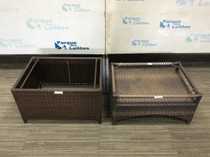 02 MESAS DE CANTO REVESTIDAS COM PLASTICO TRANCADO. TAG - AV9336J - BF8489G - PAT 61029 - 61030
