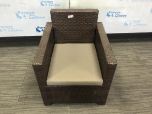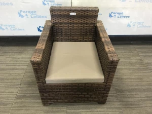 01 POLTRONA COM UMA ALMOFADA SOLTA REVESTIDA COM PLASTICO TRANCADO. TAG - BJ7397T - PAT 61033. ( NO ESTADO).