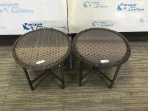 02 MESAS DE CENTRO REVESTIDAS COM PLASTICO TRANCADO. TAG - BH1653U - AV9504V - PAT 60433 - 60434. ( NO ESTADO).