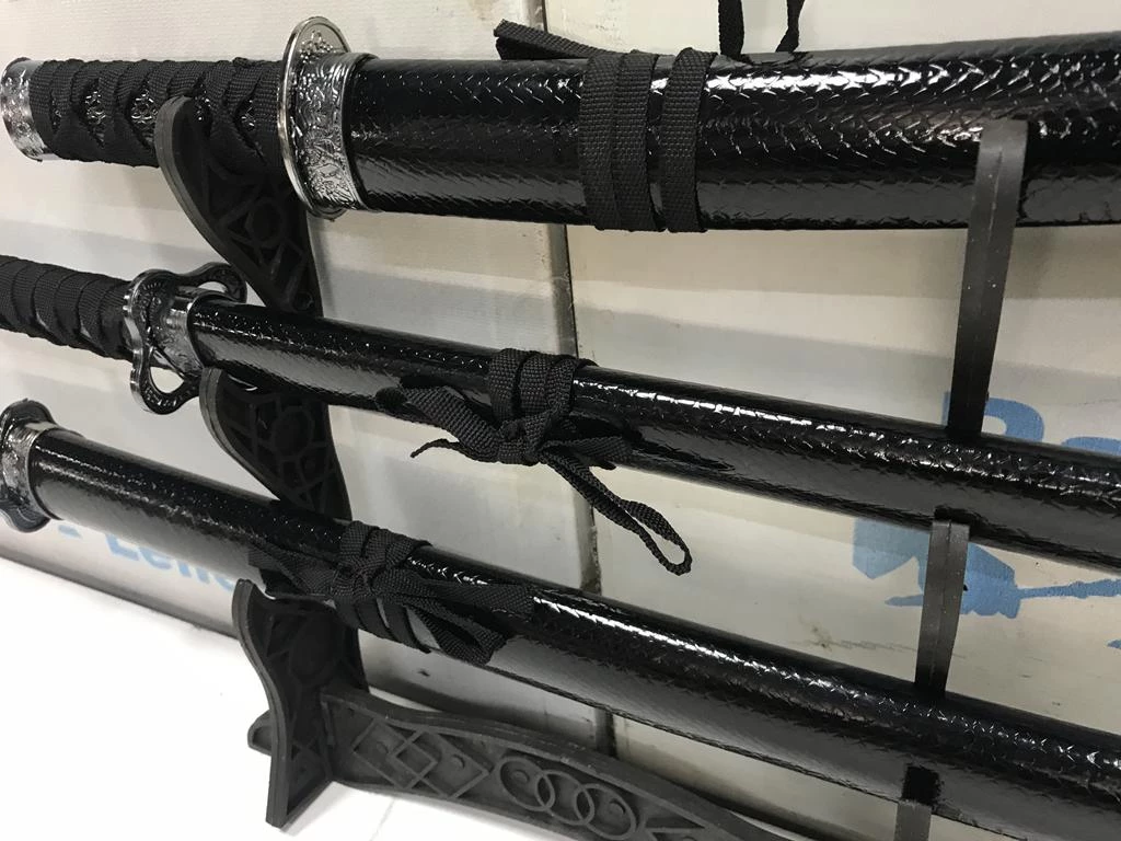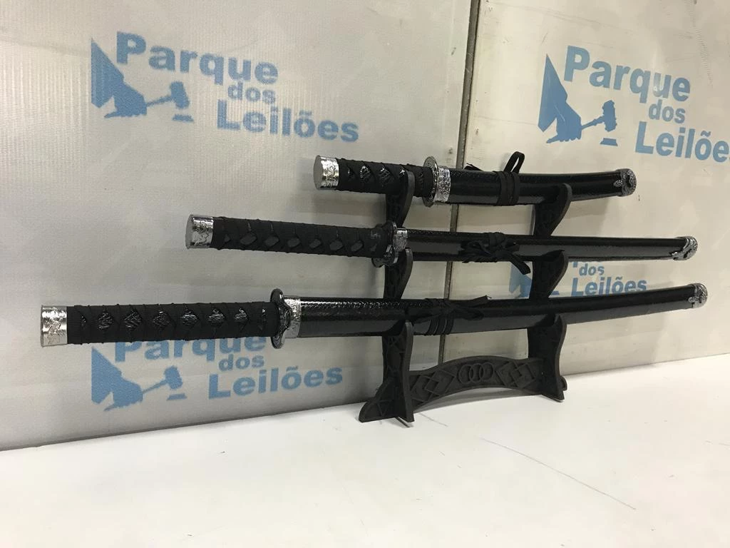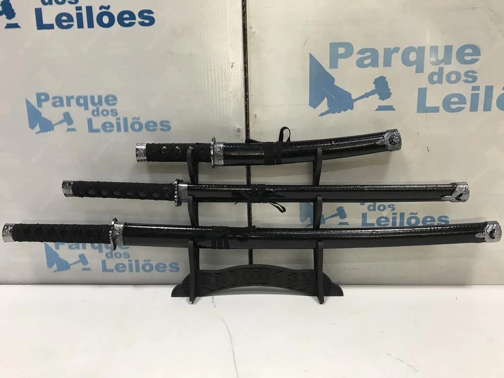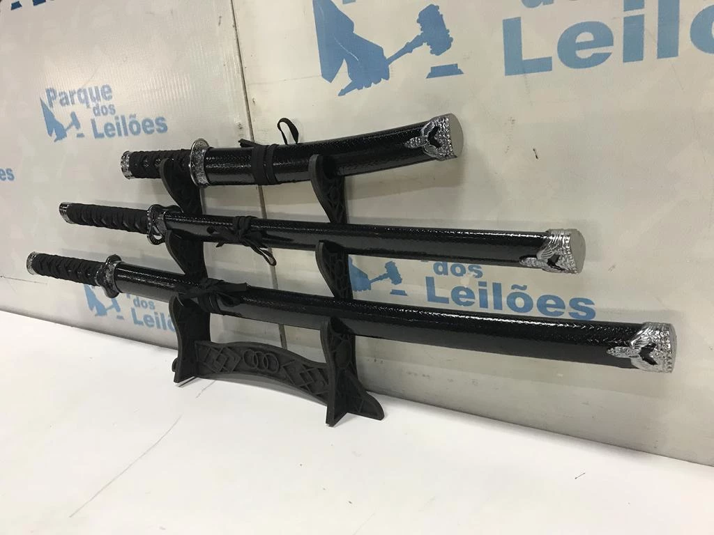 | Descrição: | 03 ESPADAS KATANAS ORNAMENTAIS COM SUPORTE. PAT 60938. ( NO ESTADO). |