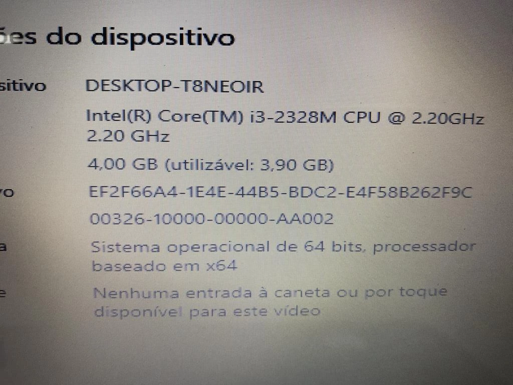 | Descrição: | 01 NOTEBOOK HP INTEL CORE SEGUNDA GERACAO 2.30GHZ, 4GB RAM, HD 500GB, WIFI, COM FONTE. PAT (NO ESTADO). |