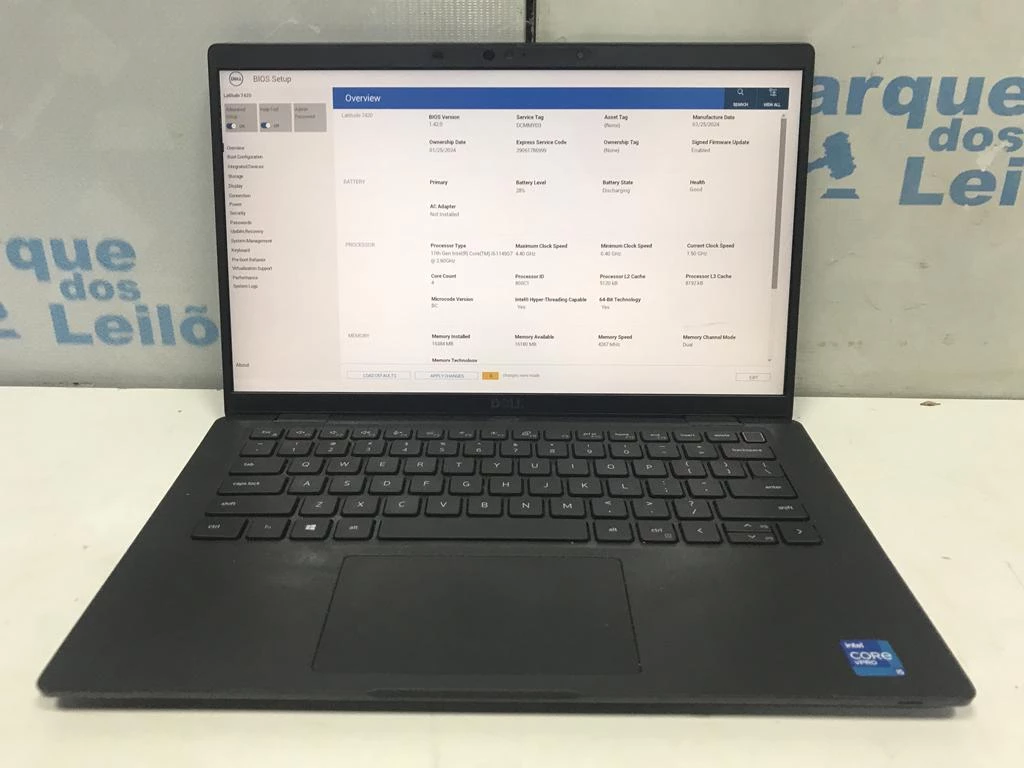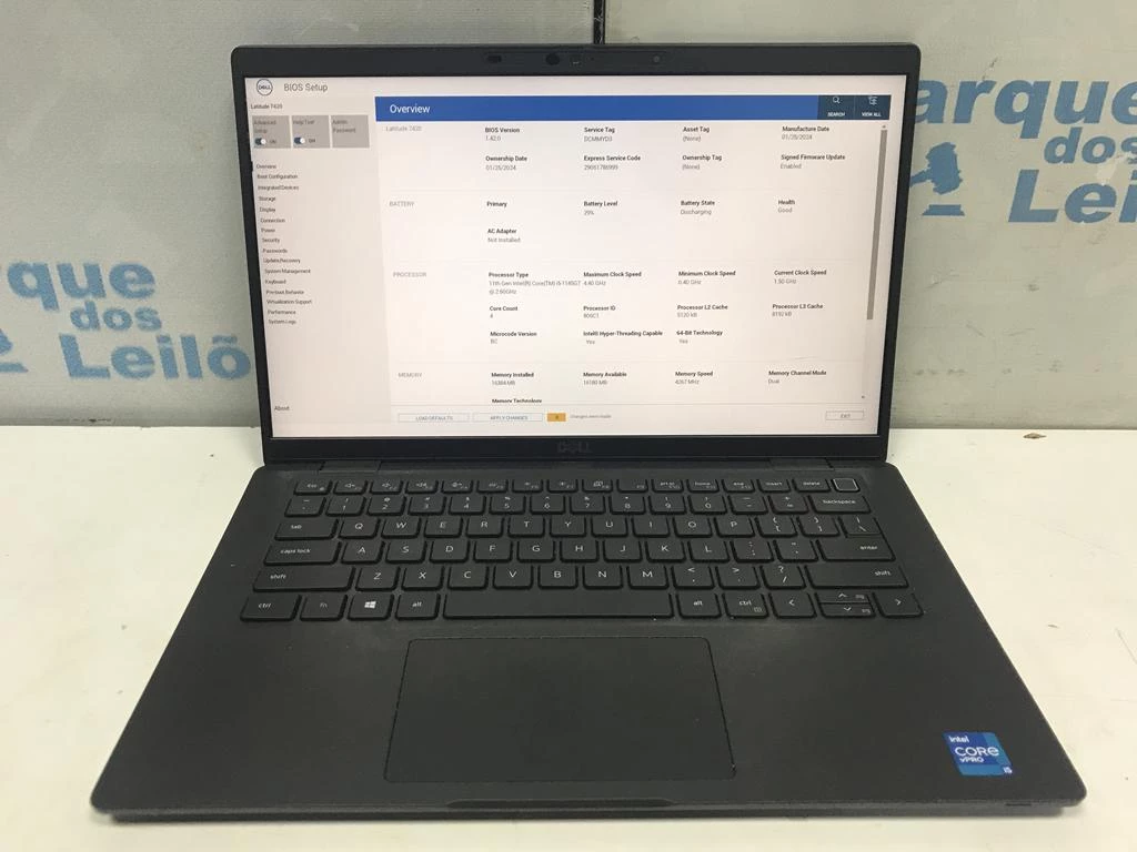| Descrição: | 01 NOTEBOOK MARCA DELL 7420 , INTEL CORE I5- 1145 G7 4.40 GHZ , 16 GB RAM , SSD NVME ,256 GB. (SEM A FONTE) NP - DCMMYD3 PAT 61163. ( NO ESTADO) |