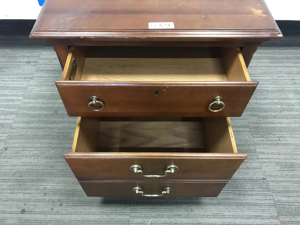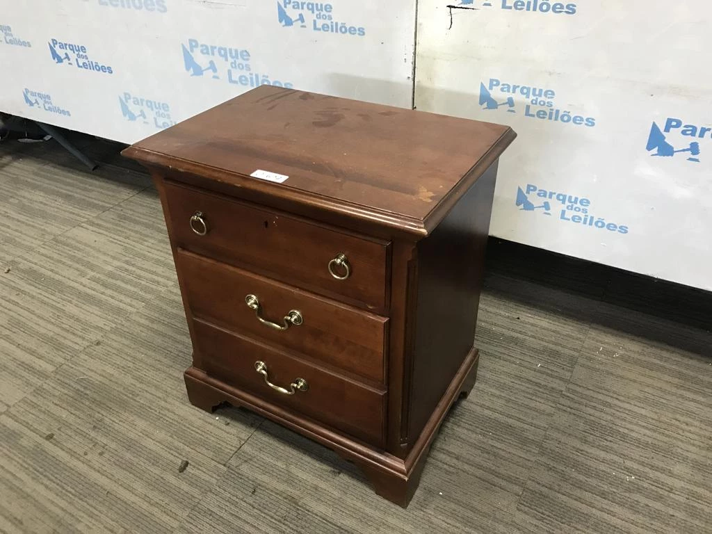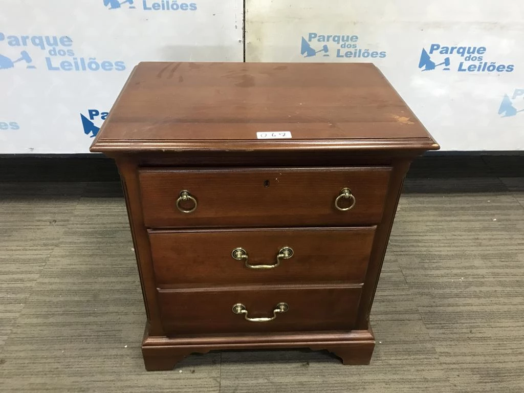 | Descrição: | 01 MESA DE CABECEIRA EM MADEIRA ESCURA COM DUAS GAVETAS PUXADORES EM METAL. TAG - AV9990R- PAT 61318. ( NO ESTADO). |
