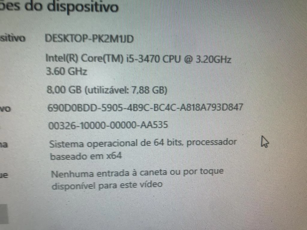 | Descrição: | 01 MICROCUMPUTADOR INTEL CORE I5-3470 TERCEIRA GERACAO 3.20GHZ, 8GB RAM, HD 500GB, 01 MONITOR 01 TECLADO E 01 MOUSE. PAT 61410 (NO ESTADO). |