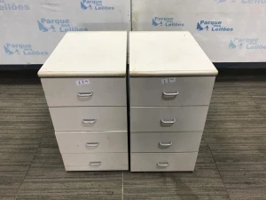 02 GAVETEIROS EM MADEIRA COM QUATRO GAVETAS CADA. PAT 61523. ( NO ESTADO).