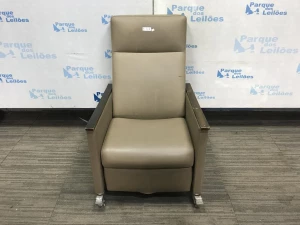 01 POLTRONA RECLINAVEL COR BEGE COM RODIZIOS. PAT 61528. ( NO ESTADO).