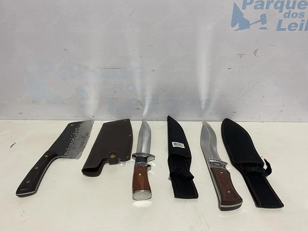 | Descrição: | 03 FACAS COM BAINHAS. PAT 61500. ( NO ESTADO). |