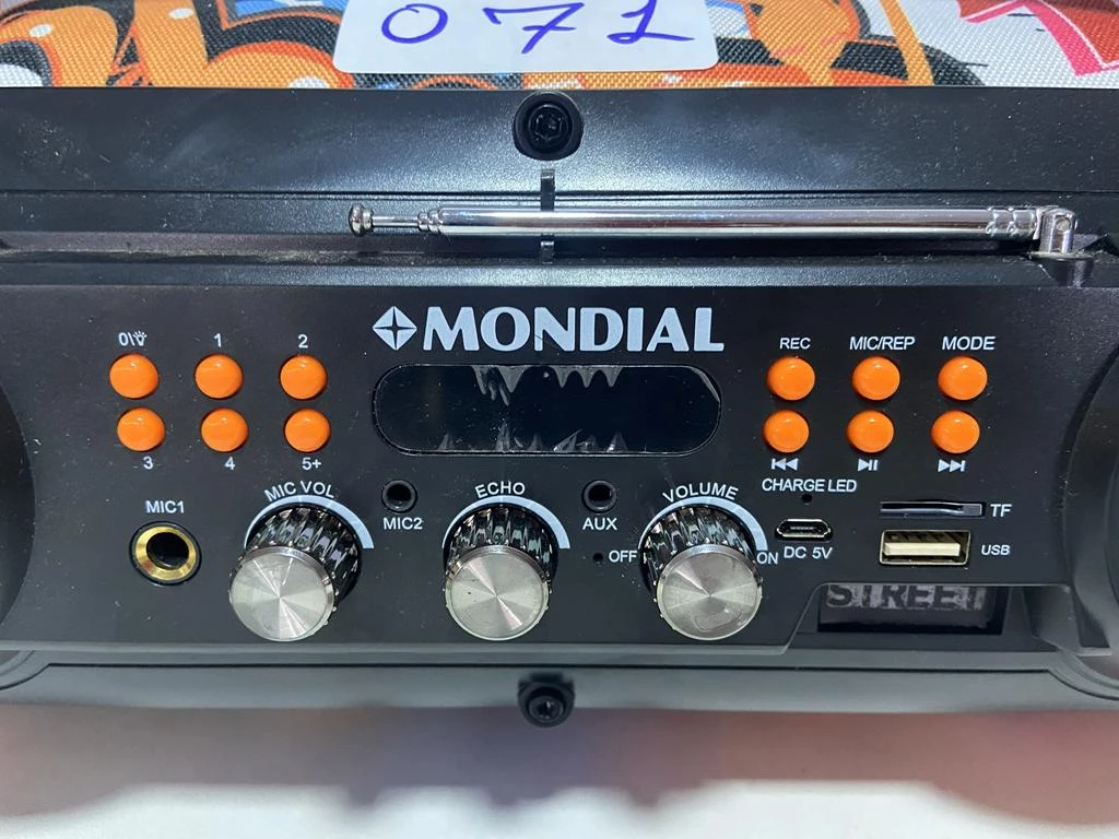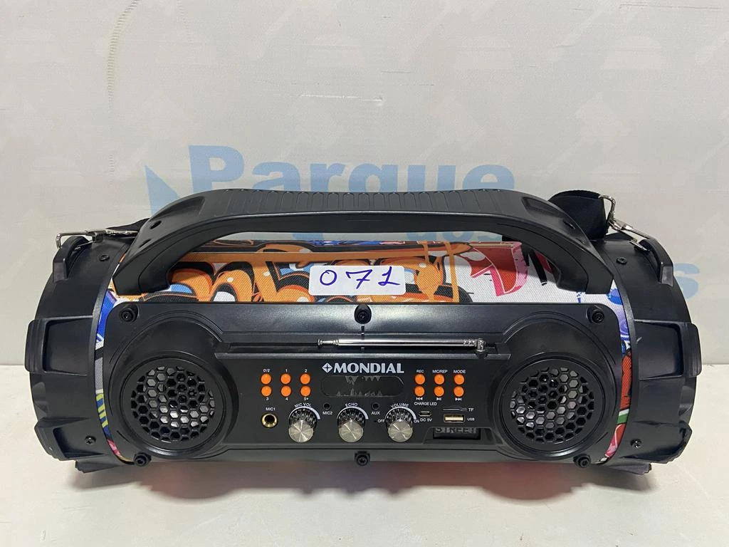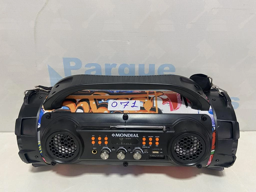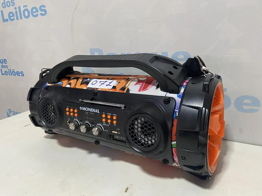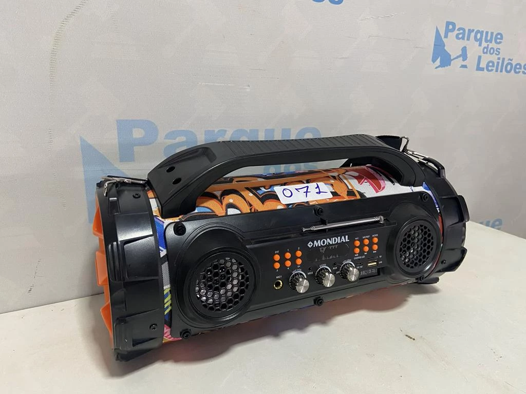 | Descrição: | 01 CAIXA DE SOM PORTATIL MARCA MONDIAL. PAT 61474 ( NO ESTADO). |