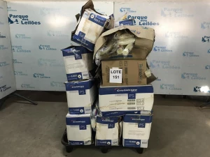 GRANDE QUANTIDAES DE MATERIAIS DE EXEPDIENTE: CAIXAS DE ENVELOPES DIVERSOS, CAIXAS DE PASTAS DIVERSAS, CLIPES, ROLOS DE PAPEL TERMICO, MARCADORES PERMANENTEMENTE, CAIXAS DE COPOS DE PLÁSTICO, CAIXAS DE NOTAS AUTO ADESIVAS E UM PALETE. PAT (NO ESTADO).