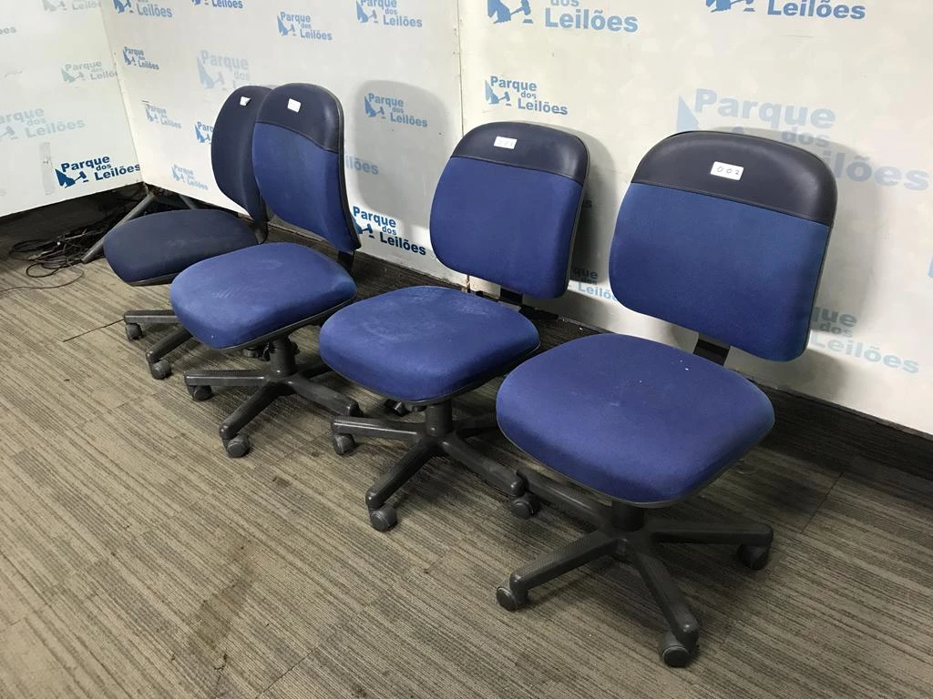 | Descrição: | 04 CADEIRAS GIRATORIAS ESTOFADAS COM TECIDO COR AZUL. PAT 61730. ( NO ESTADO). |