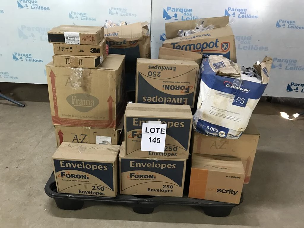 | Descrição: | GRANDE QUANTIDAES DE MATERIAIS DE EXEPDIENTE: CAIXAS DE ENVELOPES DIVERSOS, CAIXAS DE PASTAS DIVERSAS, CLIPES, ROLOS DE PAPEL TERMICO, MARCADORES PERMANENTEMENTE, CAIXAS DE COPOS DE PLÁSTICO, CAIXAS DE NOTAS AUTO ADESIVAS E UM PALETE. PAT (NO ESTADO). |