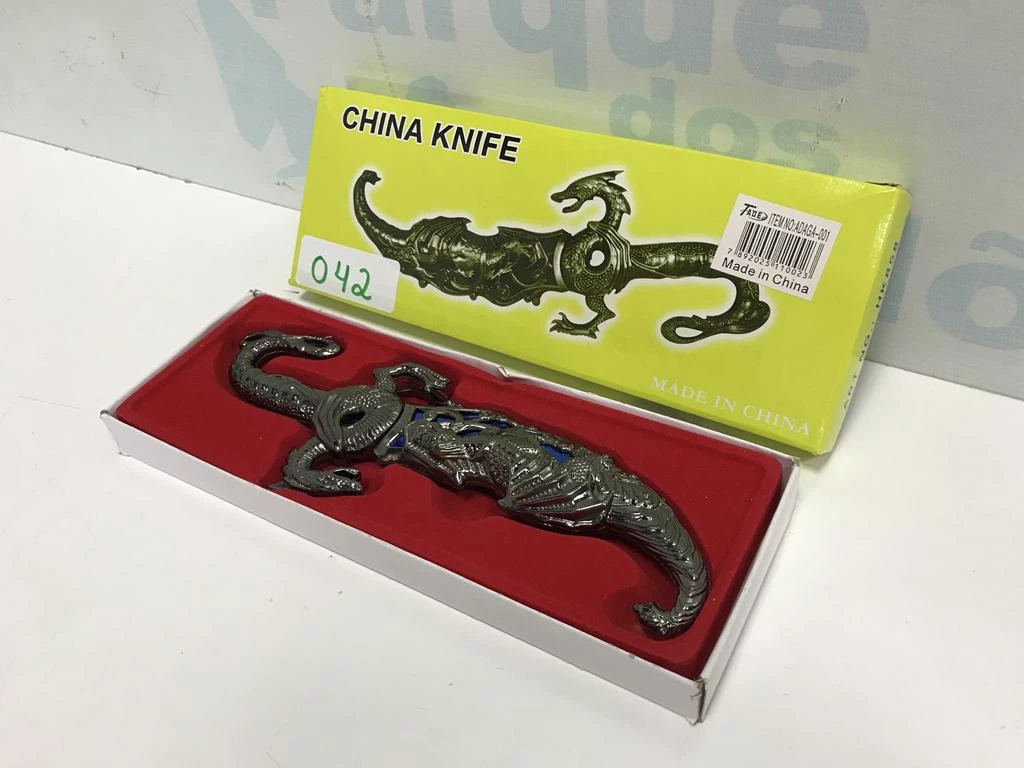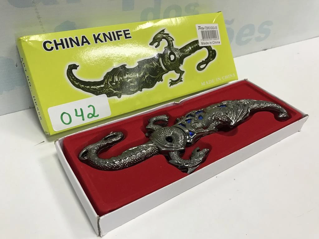 | Descrição: | 01 FACA ORIENTAL DRAGÃO COM BAINHA. PAT 62176 (NO ESTADO). |