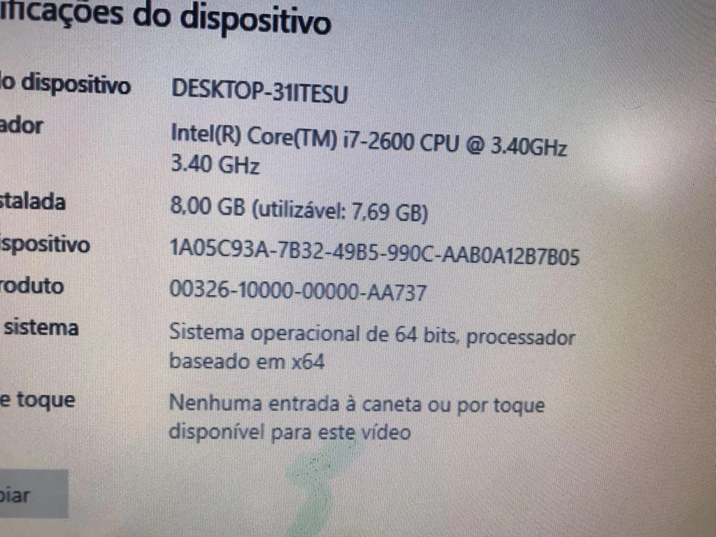 | Descrição: | 01 MICROCOMPUTADOR INTEL CORE I7-2600 3.0GHZ, 8GB RAM, HD 500GB, MONITOR , TECLADO E MOUSE. PAT 62243 (NO ESTADO). |