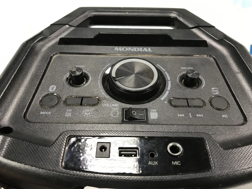 | Descrição: | 01 CAIXA DE SOM MARCA MONDIAL. PAT 62223 (NO ESTADO). |