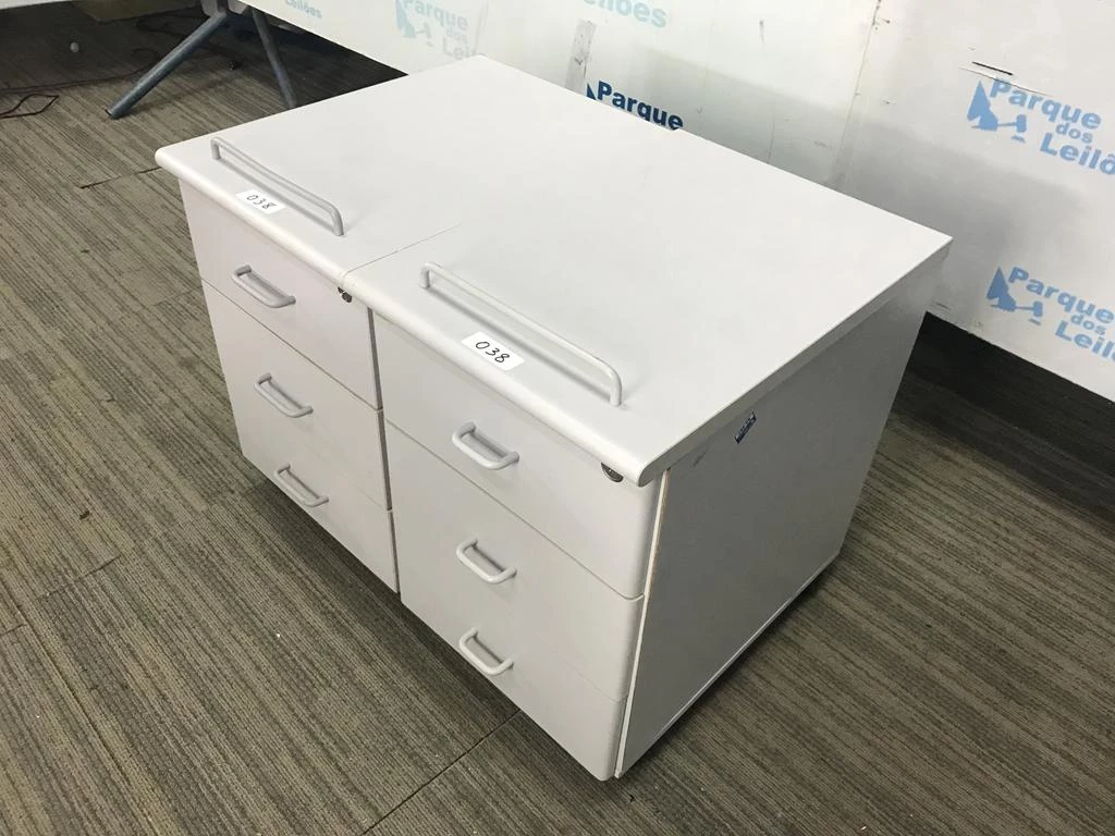 | Descrição: | 02 GAVETEIROS COM RODÍZIOS EM MADEIRA CLARA COM TRES GAVETAS. PAT 62497 (NO ESTADO). |