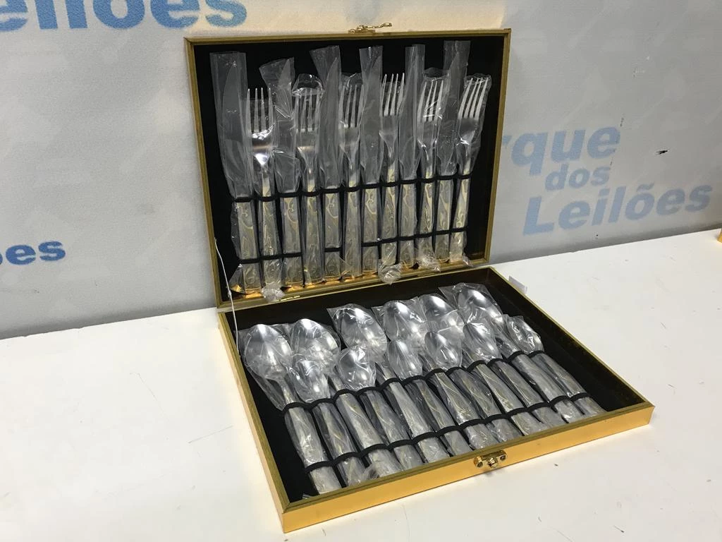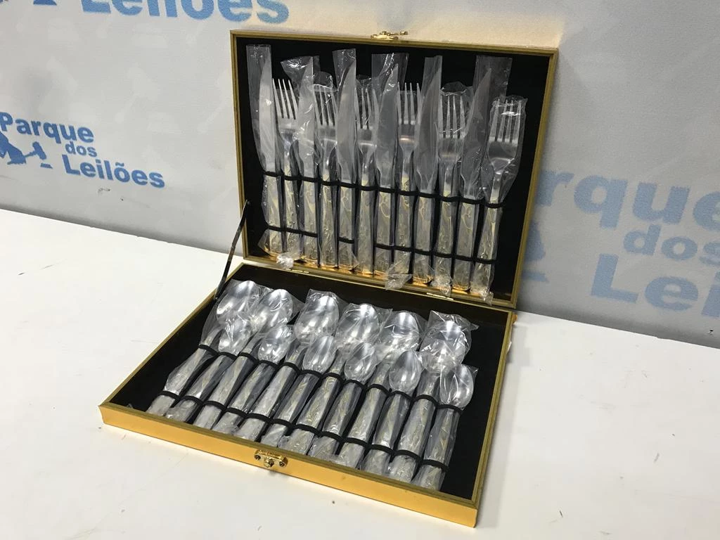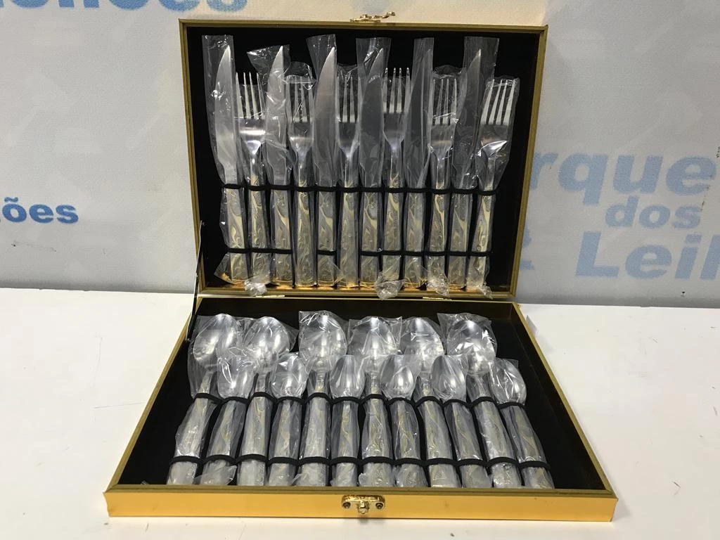 | Descrição: | 01 FAQUEIRO EM INOX COM 24 TALHERES COM MALETA. PAT 62411 (NO ESTADO). |