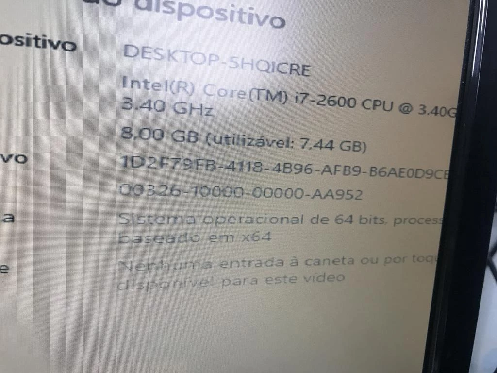 | Descrição: | 01 MICROCOMPUTADOR INTEL CORE I7-2600 2 GERAÇÃO 3.40GHZ, 8GB DE MEMÓRIA, HD 500GB, 01 MONITOR, 01 TECLADO E 01 MOUSE. PAT. 62316, 62317, 62318, 62319. (NO ESTADO). |