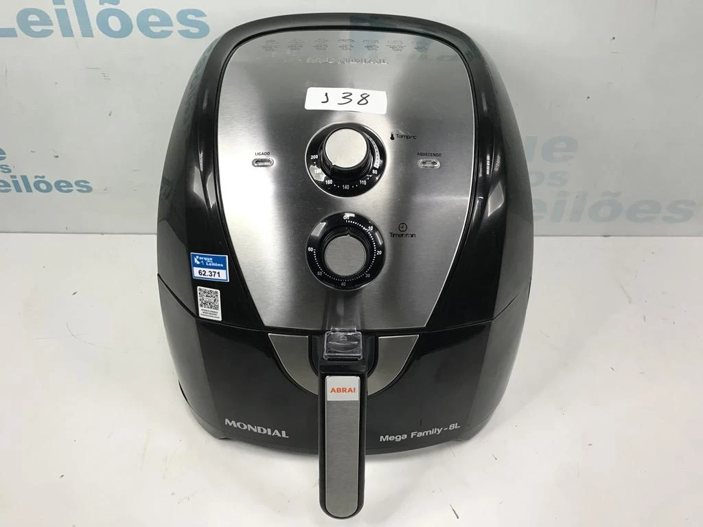 | Descrição: | 01 AIR FRYER 8L MARCA MONDIAL. PAT. 62371.(NO ESTADO). |