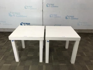 02 MESAS QUADRADAS DE CANTO COR BRANCO. TAG - 0054, 212B04 - PAT 62745, 62756 (NO ESTADO).