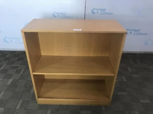 01 ESTANTE BAIXA EM MADEIRA CLARA COM UMA PRATELEIRA. TAG 10506, PAT 62749 (NO ESTADO).