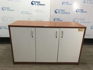 O1 ARMÁRIO BAIXO EM MADEIRA CLARA COM TRÊS PORTAS. TAG ( N/A ) PAT 62856 (NO ESTADO).