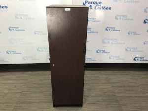 O1 ARMÁRIO ALTO EM MADEIRA ESCURA COM PORTA E QUATRO PRATELEIRAS. TAG ( N/A ) PAT 62857 (NO ESTADO).