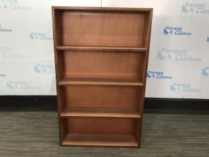 O1 ESTANTE EM MADEIRA CLARA COM E TRÊS PRATELEIRAS. PAT 62859 (NO ESTADO).