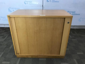 01 ARMÁRIO BAIXO EM MADEIRA CLARA COM UMA PORTA SANFONADA E UMA PRATELEIRA. TAG 20810 PAT 62767 (NO ESTADO).