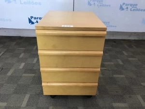 01 GAVETEIRO COM RODÍZIOS EM MADEIRA CLARA COM 4 GAVETAS. TAG - 20606, PAT - 62634 (NO ESTADO).