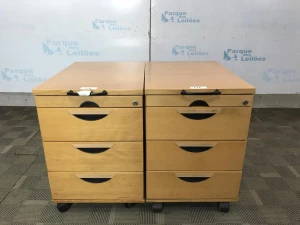 02 GAVETEIROS COM RODÍZIOS EM MADEIRA CLARA COM 4 GAVETAS . TAG - 213003, 12310 PAT - 62772, 62773 (NO ESTADO).