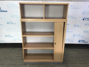 01 ARMÁRIO ALTO EM MADEIRA CLARA COM PORTA SANFONADA E DUAS PRATELEIRAS. TAG 21307 PAT 62760 (NO ESTADO).