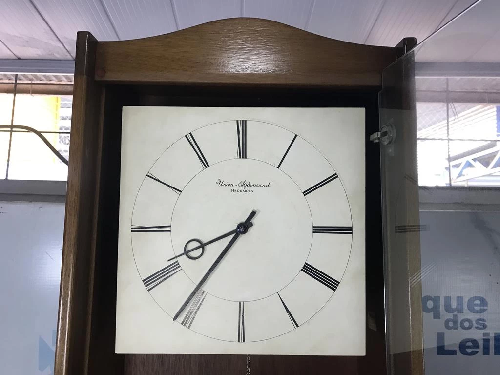 | Descrição: | 01 RELÓGIO DE CHÃO COM PÊNDULO E PESO UNION-STJÄRNSUND, HEDEMORA. TAG 0040, PAT 62629 (NO ESTADO). |