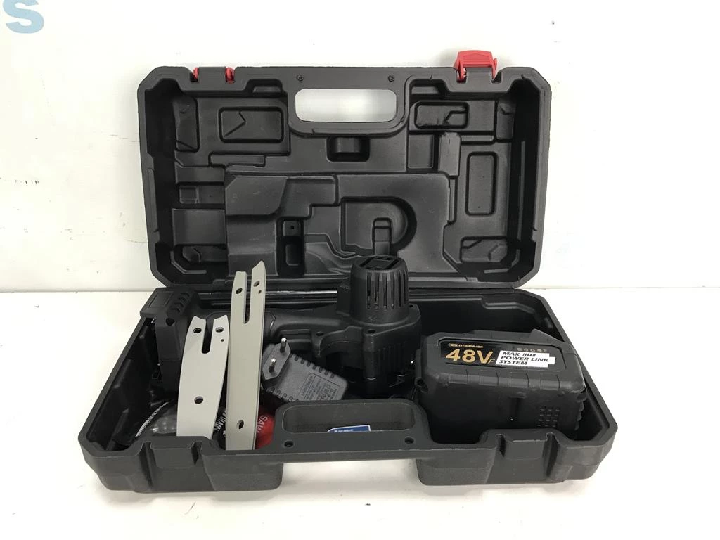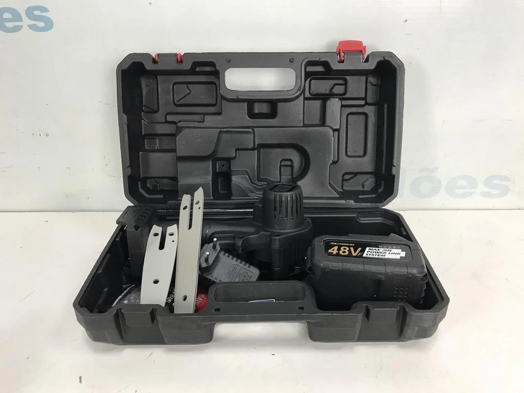 | Descrição: | 01 MINI MOTOSSERRA 48 WATTS COM MALETA COM 2 LÂMINAS E 2 CORRENTES. PAT 62544 (NO ESTADO). |